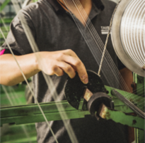 TECHNOLOGICAL INNOVATION 技术创新 先进的生产机器设备,解决了行业中传统的弊端痛点,产品质量与稳定性在同行中脱颖而出。 TECHNOLOGICAL INNOVATION 技术创新 先进的生产机器设备,解决了行业中传统的弊端痛点,产品质量与稳定性在同行中脱颖而出。 01. 高精度经纱监控仪 Takefast 采用高精度轻纱监控仪,解决传统生产所带来的张力不均,厚薄不一致,同款带深浅色;循环位偏差较大这四大异常,为产品的高质量保驾护航 ·传统压磅码方式 需要值车工不断地加减磅码,易被忽视,织带弹力易出现忽大忽小 VS ·经纱监控调节方式 电子数据全程监控,控制张力效果明显,减少损耗稳定张力 02. 移动拉伸测试机 移动拉伸测试机,测试速度快,轻巧灵活,随意移动,无需接电源,无需接空压气管,无需剪带气动夹具,挂上直接测试测试力度 0~10KGF60S 可连续测试 2次,测试数据准确专业移动拉伸测试机不仅可提供拉力数据及拉力图导出,还可自动测量车间的温度及湿度。 ·移动拉伸测试机 可随时在生产过程中测试拉力数据,精确高效,方便快捷。 VS ·经纱监控调节方式 不能随便移动,不能随时提供 拉力测试数据。 03. 染色机全自动助剂监测系统 织带染色行业后处理设备比较原始,生产工艺执行困难,导致的返修率居高不下,严重阻碍生产。染色机全自动助剂监控系统完美解决染色后处理工艺执行问题。 ·传统手动加料 根据织物成品要求,员工手动加注已调配好的助剂,容易漏,造成浪费,品质不稳定。 VS ·全自动助剂检测系统 采用智能检测仪器实时检测生产溶液中物质有效成分,精准补充,让生产工艺完美重现,并且贯穿整个生产过程 04. 自动粉末配料系统 传统的称量粉末配色,效率低,人工称量费时且不精准,粉末配色系统,连接ERP系统,自动链接系统单据,精准取量,提高效率及精准度。 ·传统人工称量 人工核对单据及用量,费时且不精准。 VS ·自动粉末配料系统 不能随便移动,不能随时提供 拉力测试数据。 品质管控 Takefast 纺织的每一件产品,以客户要求的技术规范和国际标准进行了测试和检查。24小时连续独立检验,保证产品质量,建立客户对Takefast纺织的信心 原料管控Raw material control 原料管控 原料纱线是由行业内知名供应商:纽士达、锦江、德华、美达等…..供应,从源头上把控产品质量。应市场业务不断的扩大,纱线的种类也日渐增多,薄荷纱线、环保纱线吸湿排汗纱线、抗菌纱线等……所有来料纱线都会按要求进行检验和测试,确保流入生产使用的物料是符合规定要求,以保证产品质量。 理化室Laboratory 装备精良的实验室,明确规定制程作业程序,以保证织带过程中的品质得到合理、 有效的控制,减少不良品的产生。为新品研发和大货生产保驾护航。 实验室测试项目除了各项常规测试,还可做海水色牢度、氯水色牢度、氯飘色牢度、光照色牢度、色泣牢度、高温老化、线密度、F数、捻度、拉伸测试、断裂测试、克重等测试。